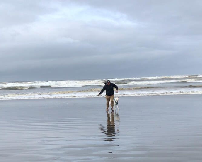 Action shot of my husky, Buzz and I at the Oregon coast!
